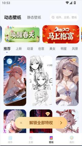 3、平台每周更新壁纸、主题与组件,紧跟二次元、谷美、ins 风等流行趋势,满足用户的多样化需求。