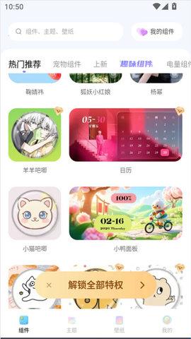 2、在“组件”页面,探索丰富的小组件,如宠物组件、趣味组件、电量组件等。