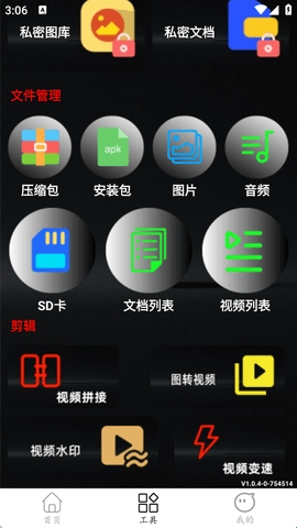 1、需要剪辑视频的用户可以来到“工具”页面,在下面找到要使用的剪辑功能。