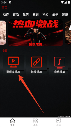1、大家进入软件后来到首页,然后点击“视频库播放”。