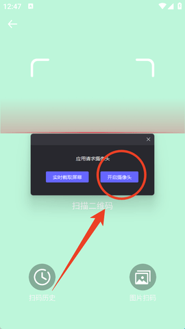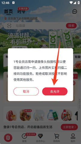 2、首次使用需要申请手机摄像头拍摄权限,请点一下“去允许”。