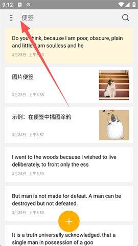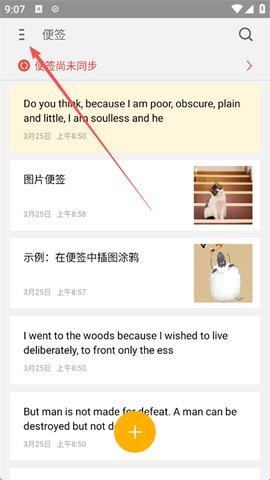 1、打开便签首页,点击左上角的侧边栏按钮。