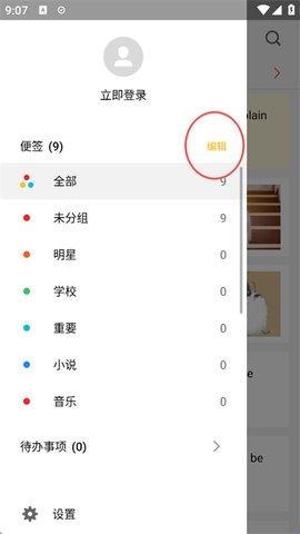 2、在侧边栏中,点击“便签分类”右侧的“编辑”按钮,进入分组管理页面。