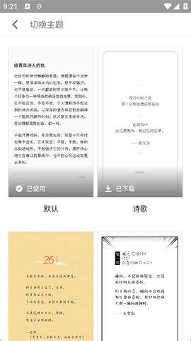 2、软件内置十余套高质量主题,字体精致、排版优雅,杂志式阅读体验,可自定义背景、字体大小。