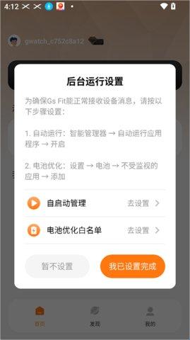 1、打开Gs Fit app,登录后确保App能正常接收设备消息。建议在手机设置中调整电池优化和自启动权限,避免影响连接。