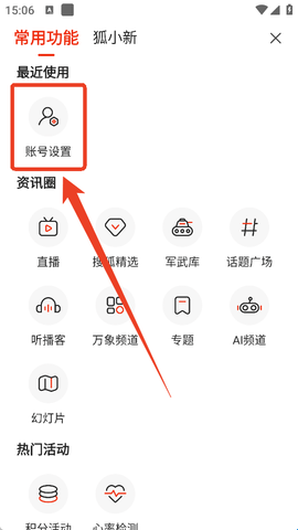 2、然后找到“账号设置”选项,点击进入。