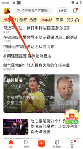 1、我们可以来到软件首页,然后点击首页左上角这个搜狐图标。