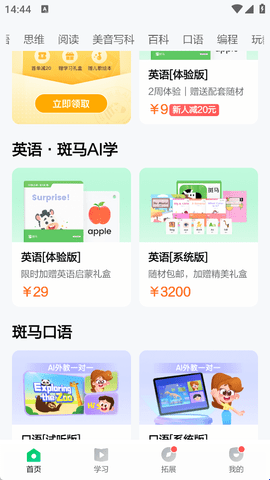 安卓斑马英语app(斑马AI学)是一款专为儿童设计的AI智慧学习平台,里面的学科内容涵盖英语、数学、语文、科学、写字、美术等多个领域,提供了大量优质学习资料。该平台已经接入了猿辅导AI大模型,可以为孩子们智能推荐适合他们的内容,让你的孩子可以快乐高效地学习。