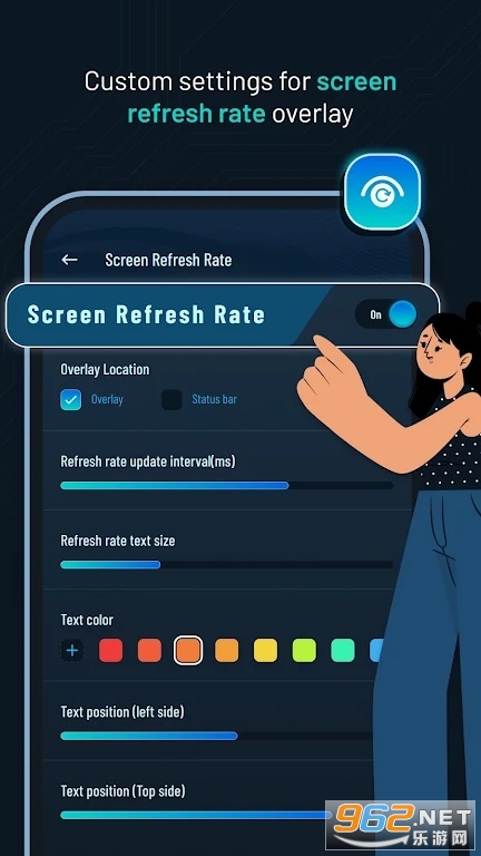 - 自定义刷新率文本大小、颜色和位置。