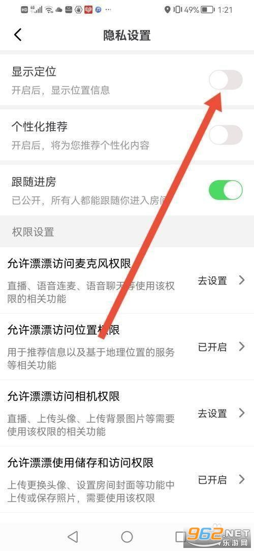来到隐私设置,接下来把【显示定位】的按钮关闭即可。