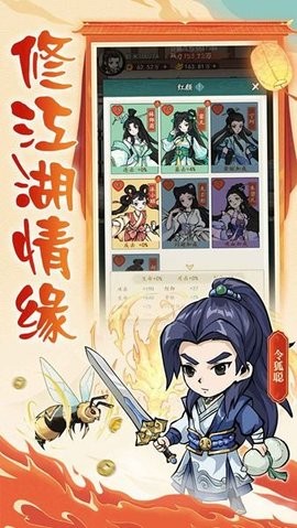 1、游戏以武侠江湖为背景,结合了角色扮演、策略养成和冒险元素;