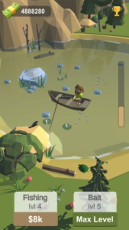 在《闲置渔夫生活》游戏中,我们可以享受到安静自由的垂钓生活。在这款游戏中玩家不仅可以操控小船去往不同的地方进行垂钓,而且还可以将钓到的鱼进行售卖,从而有足够的资金,在游戏中游戏中购买不同的装备,让自己可以在游戏中更好的垂钓。