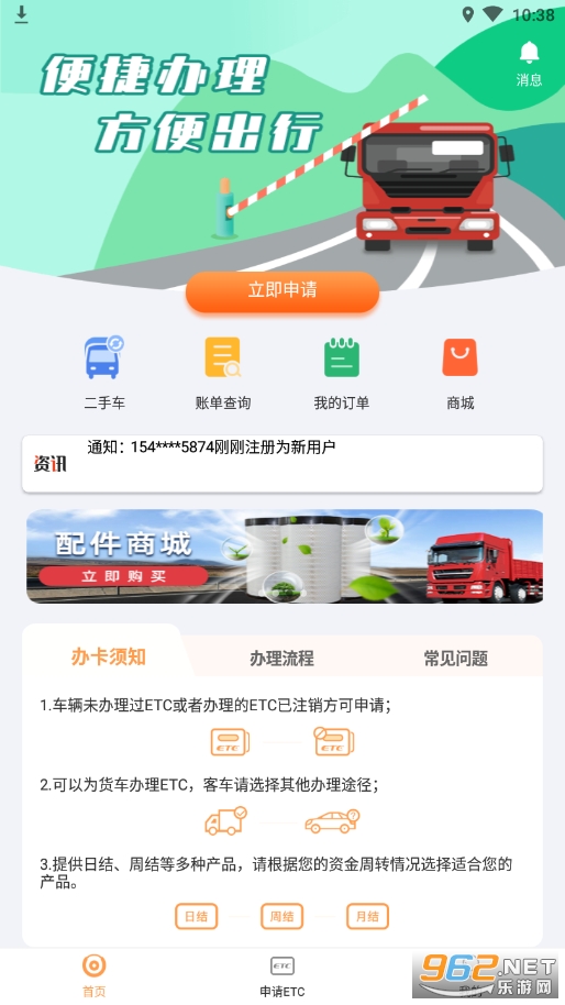 专为货车车主朋友们打造的一款etc服务平台,里面包含了丰富的功能,大家可以在这里办理,激活ETC,查询ETC,进行ETC的充值等等,操作很方便,使用也十分简单,有需要的话就来下载吧!