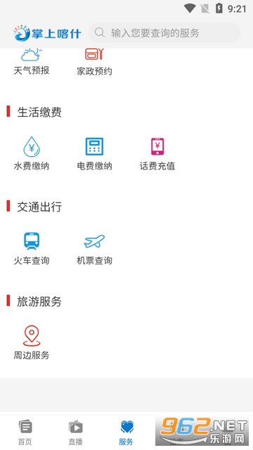 6、点击服务拥有生活服务,生活缴费,交通出行,旅游服务。
