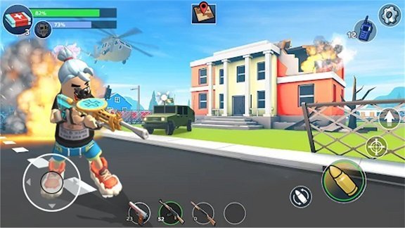 安卓《香肠跳伞吃鸡派对》游戏中会有非常大的地图可以用在交战区,玩家可以在这里使用不同的武器进行战斗。每一局游戏中都会拥有近百玩家与我们进行比拼,因此玩家需要在游戏中时刻保持警惕,而且还可以与游戏在线组队,进行生死角逐。