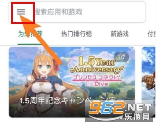 1、打开谷歌商店首页,点击左上角“三个横杠”图标,如图所示。