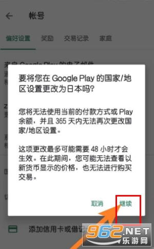 5、点击继续,即可将你的国家地区切换为“日本”,如图所示。