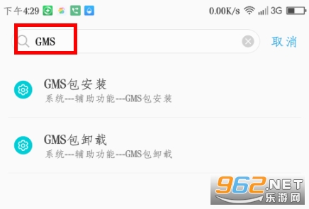 1、play商店打不开解决方法,首先重新下载GMS安装包保存到手机文件夹,打开自己的手机设置,进入搜索GMS。