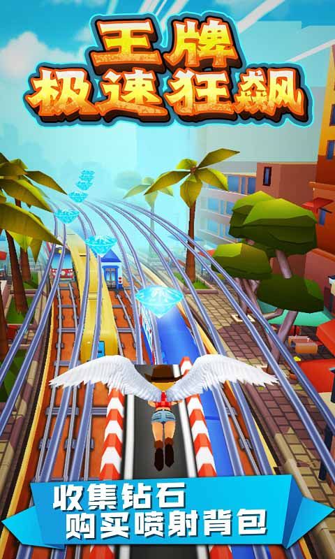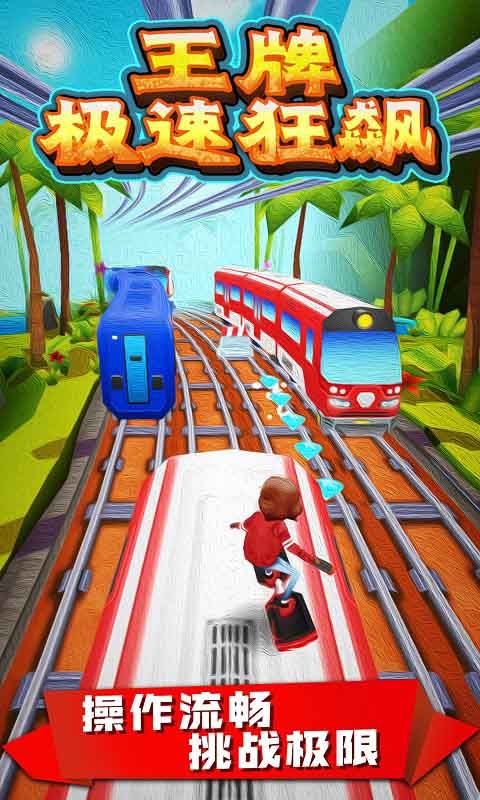 1、王牌极速狂飙游戏玩家控制主角避开地铁路上的障碍物,跳过陷阱向前奔跑;