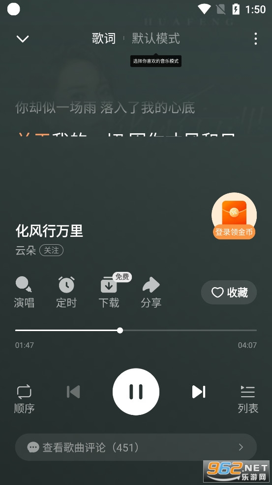 可以签到听歌做任务等来赚取金币