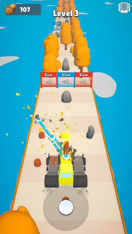 3、独特的控制方式:玩家需要掌握伐木机的操作方式,包括控制速度、转向和跳跃。伐木机跑酷游戏的挑战过程中一定的技巧和耐心来适应。