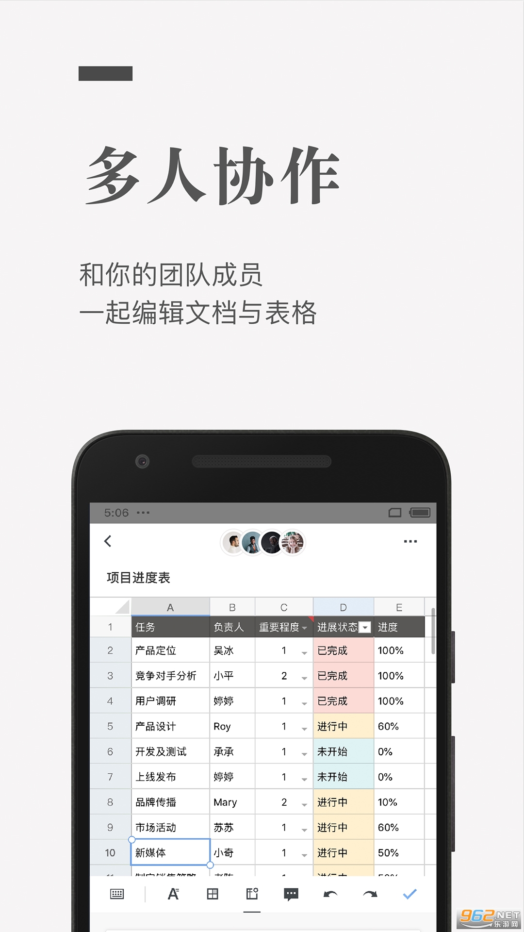 多人实时协作:你可以邀请他人与你协作编辑同一个文档或表格,并通过浮动的头像实时看到其他成员的编辑过程。