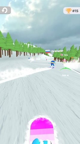2、玩家可以邀请好友加入游戏,一起挑战各种场景和障碍,争夺最快的滑雪时间;