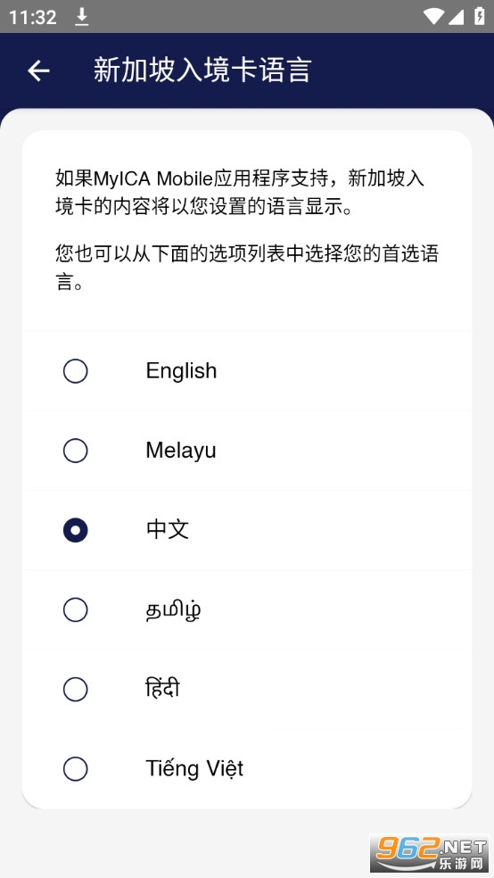 3、点击新加坡入境卡语言