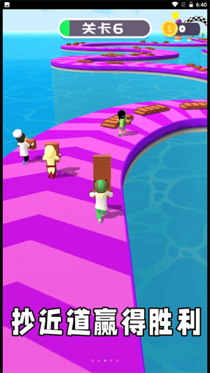 在《搬砖工大挑战》这款游戏中,玩家将会操控着游戏中的角色进行搬砖竞赛,我们需要尽可能快的在赛道上收集砖块,并且也要尽可能多的的收集砖块。我们收集完砖块后要继续前进,等到需要使用砖块建造路的时候,你就会发现有足够多的砖块是有多么重要,第一个到达终点的人获得游戏的胜利。