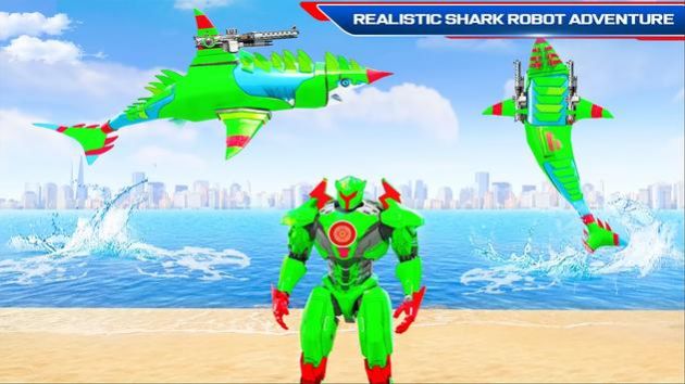 1、鲨鱼机器人汽车改造偶游戏中成为机器人英雄,自由穿梭于城市,轻松探索不同的地方;