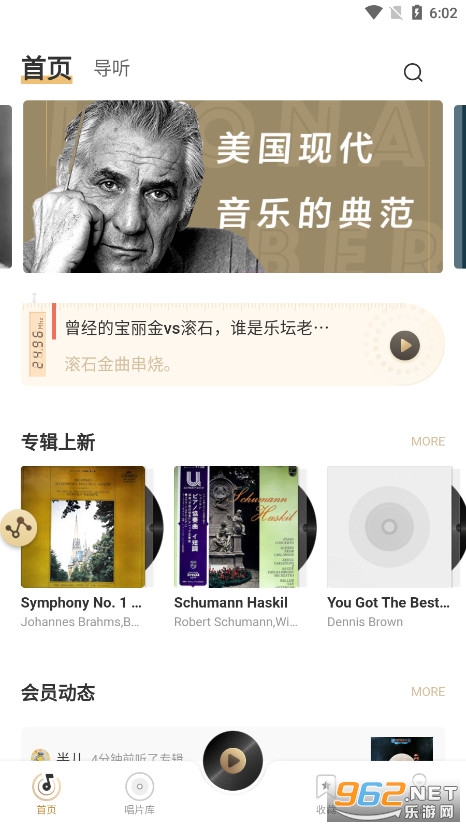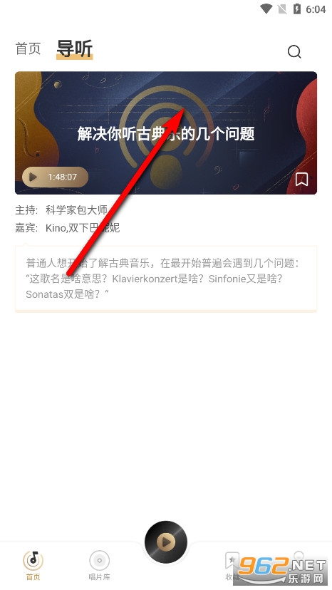 3、可以看到软件共分为首页、唱片库、收藏以及我的几个选项,“导听”功能版块也有些专业的视频讲解。