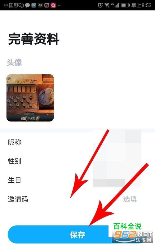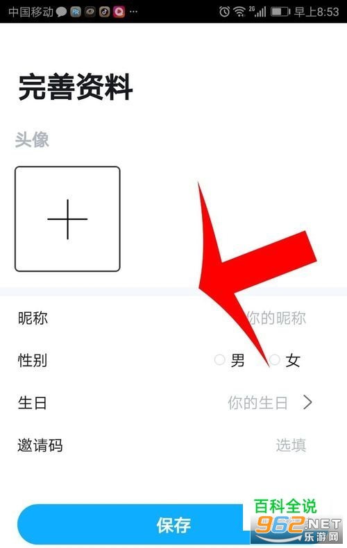 打开“完善资料”界面后,编辑头像、昵称和生日
