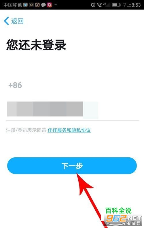 打开“还未登录”界面后,在指定位置输入手机号后点击“下一步”,位置见下图