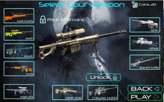 在这个狙击手游戏中你会等待你的目标确保没有无辜的人得到子弹,所以在射击目标之前一定要先确定。这款游戏是根据用户的兴趣而设计的,在这款狙击手射击中难度会增加。