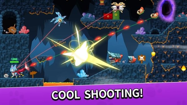 安卓《动作猫》游戏可以给游戏玩家带来非常不错的冒险玩法,在这款游戏中拥有非常多不同关卡,每一个关卡中都会全新的地图,玩家可以让小猫拥不同的武器与地牢中的怪物进行战斗,因此同时也利用不同的走位,让它们减少敌人的伤害。