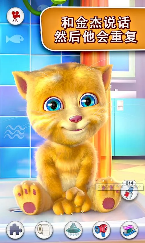 1、刷牙、上厕所、玩玩具等会说话的金杰猫的方方面面,会说话的金杰猫游戏等你来玩;