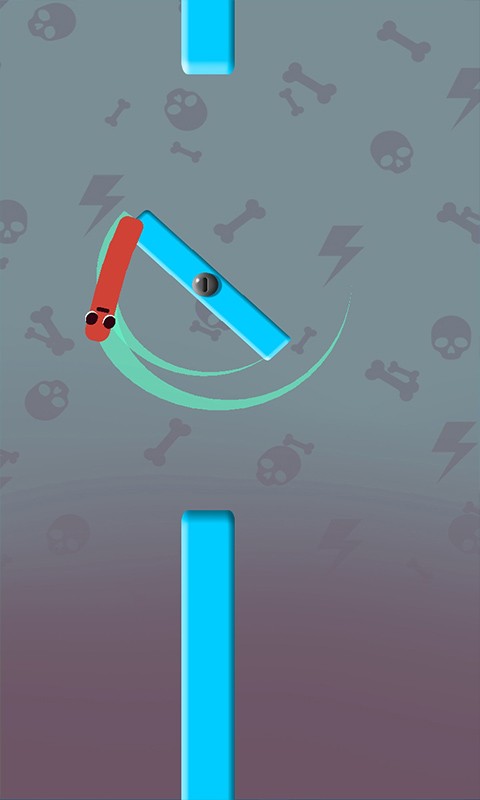 2、你可以用手指滑动屏幕,按下屏幕,让香肠飞出去,粘在障碍物上。