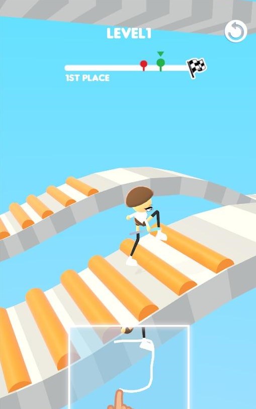 安卓在《重复赛跑者》这款游戏中,玩家将会操控着游戏中的角色进行跑酷,跑酷的赛道上十分的崎岖,有着各种各样的障碍,并且道路也是多种多样的类型,我们需要根据游戏中的要求,画出相对应的形状,这样才能快速前进,我们需要超越游戏中的对手,第一个到达游戏的终点。