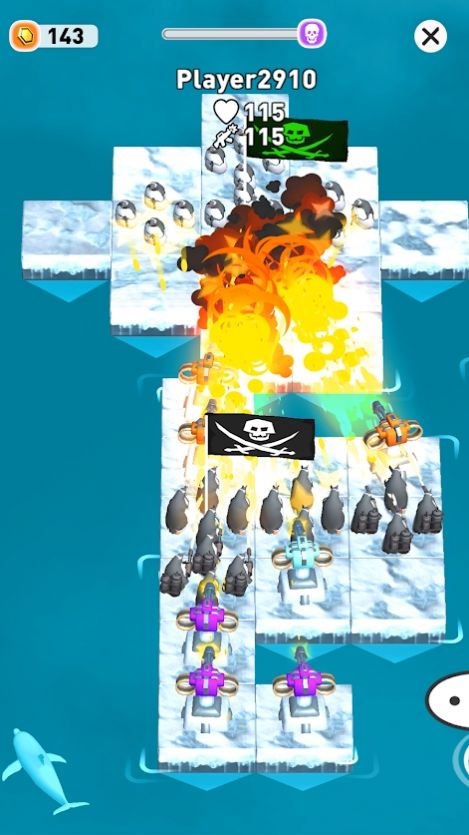 4、带领你的企鹅在有限的冰地上作战,使你必须通过升级企鹅的各种功能来对抗它。