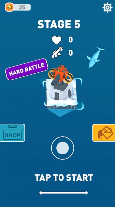 2、你需要海里的蜗牛来攻击企鹅群,打败它们来赢得筏子的战斗。