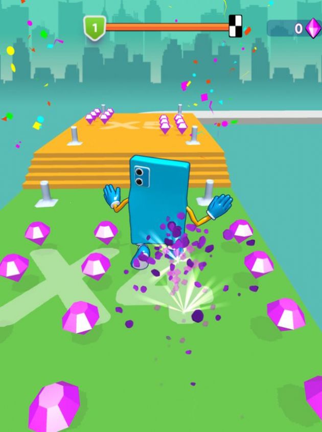 安卓在《手机奔跑3D》这款游戏中,玩家将会操控则游戏中的手机正在赛道上奔跑,奔跑的过程中赛道上会有很多硬币,有的是红色的有的是绿色的,我们需要尽可能多的收集绿色的硬币。游戏的赛道上还有很多钻石,我们也需要收集钻石在商城中购买皮肤,游戏玩法十分有趣。