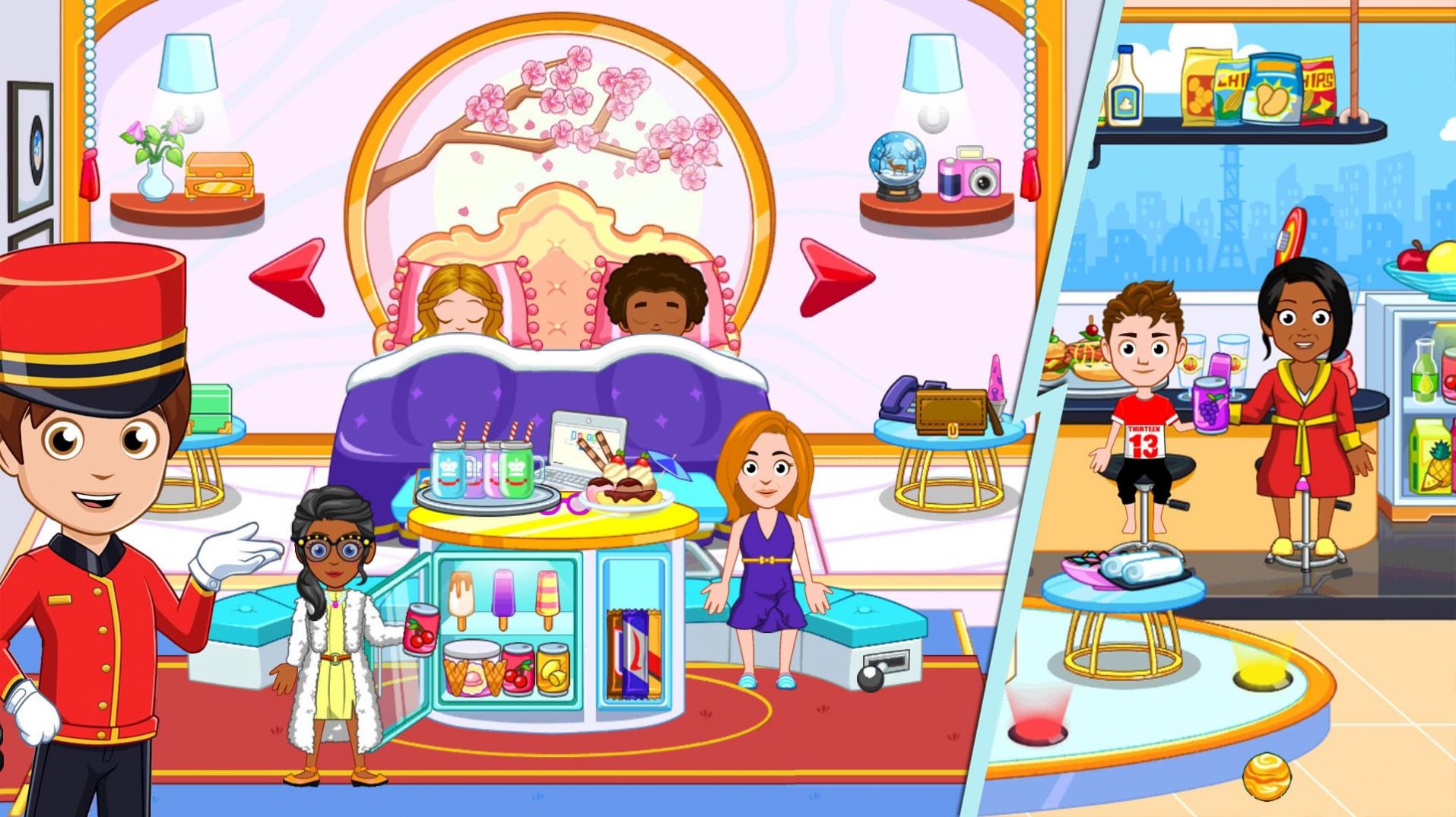 2、迷你城市度假游戏的非常自由的玩法,随时开启新的假期冒险,收集大量宝物;